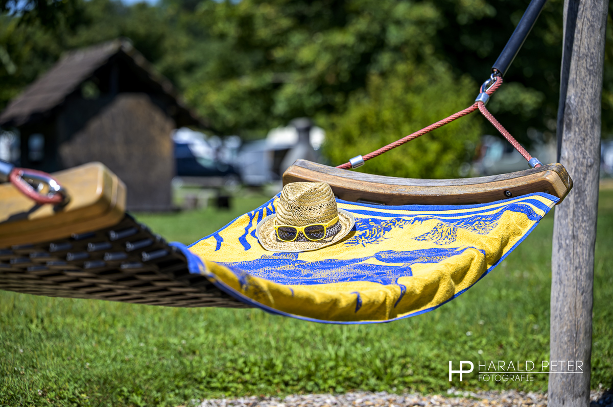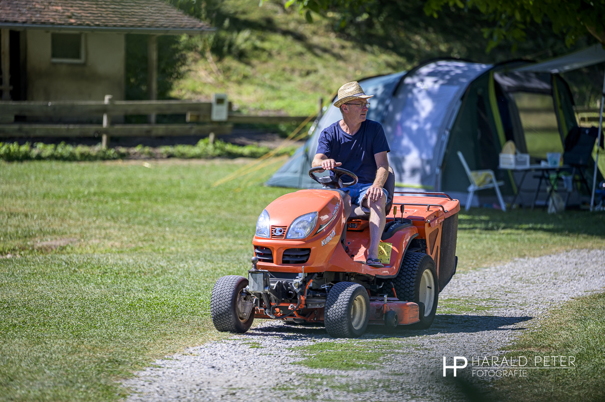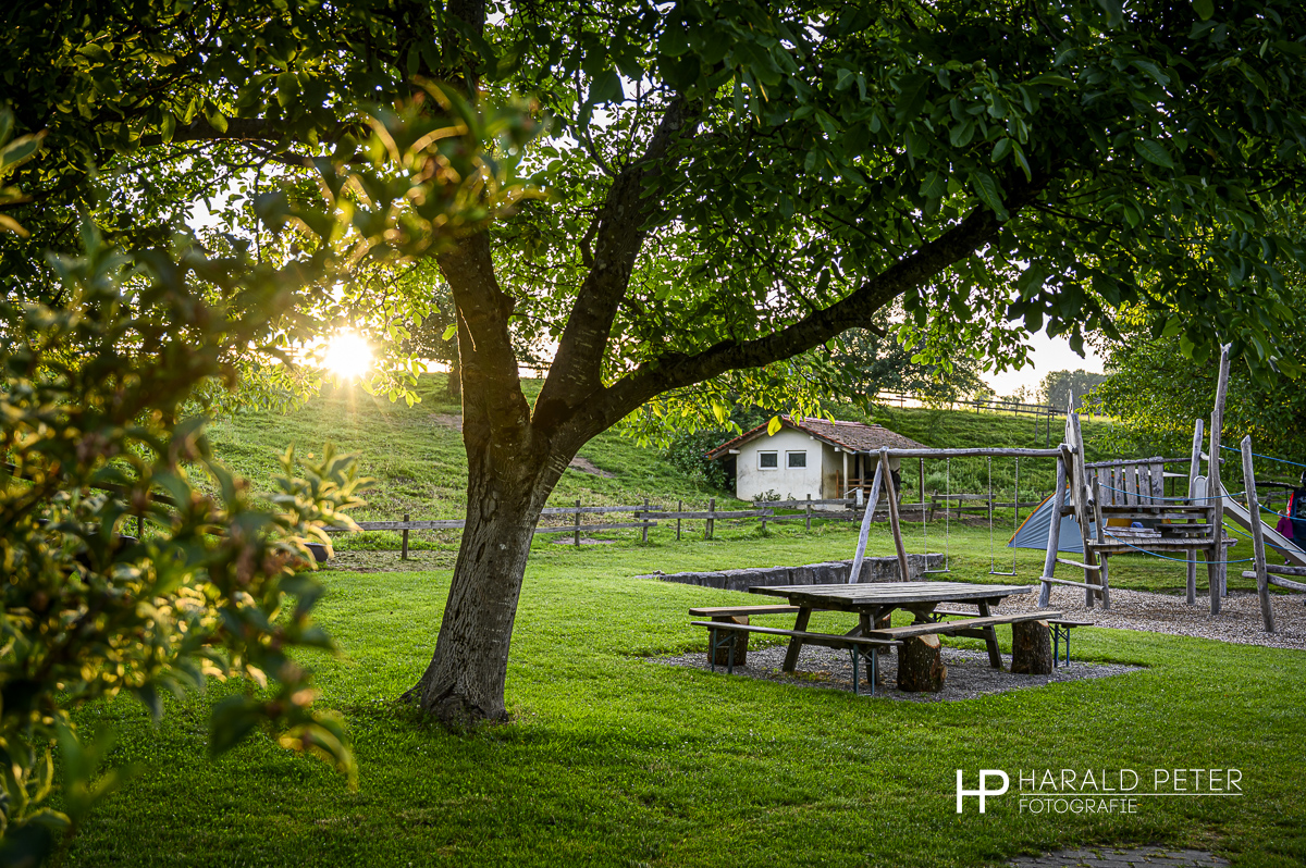 Camping zwischen Wiesen, Obstgärten und Flussufer