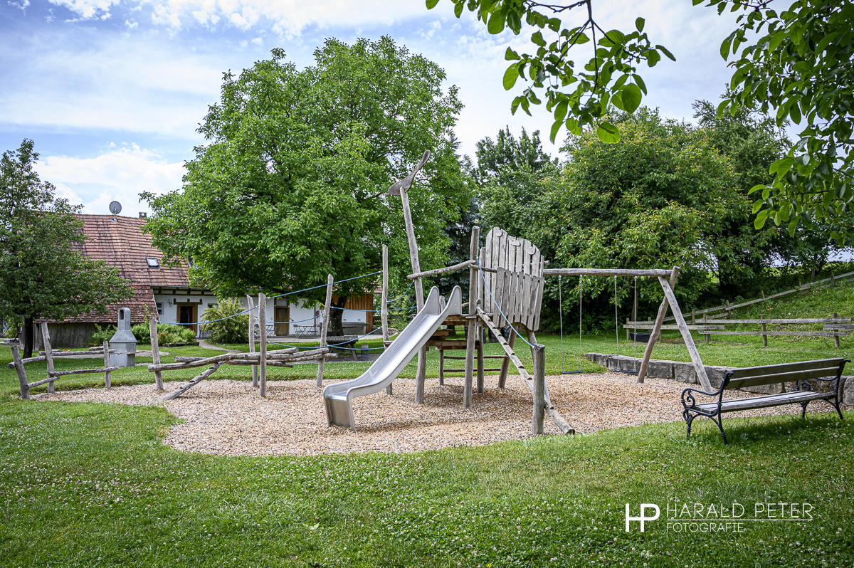Ein echtes Highlight ist der natürliche Schwimmteich, der an warmen Tagen für Erfrischung sorgt und gleichzeitig eine ruhige, naturnahe Atmosphäre schafft. Kinder können sich auf dem Spielplatz mit Vogelnestschaukel und Kletterturm austoben, während Fußball, Tischtennis und Beachvolleyball für sportliche Abwechslung sorgen. Besonders beliebt sind auch die tierischen Bewohner des Hofes: Esel, Hühner, Hasen und Ziegen machen den Aufenthalt für kleine Gäste zu einem unvergesslichen Erlebnis.